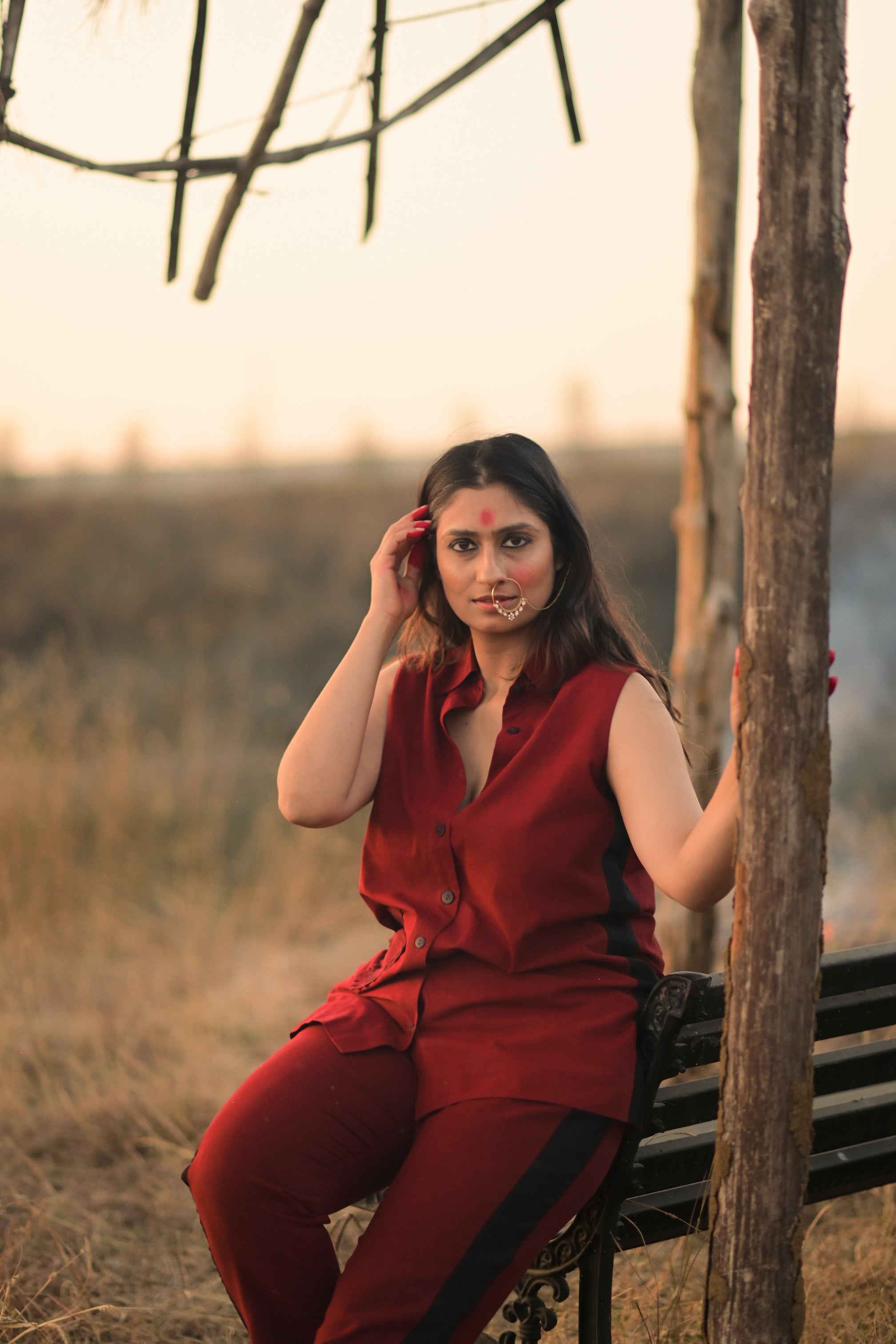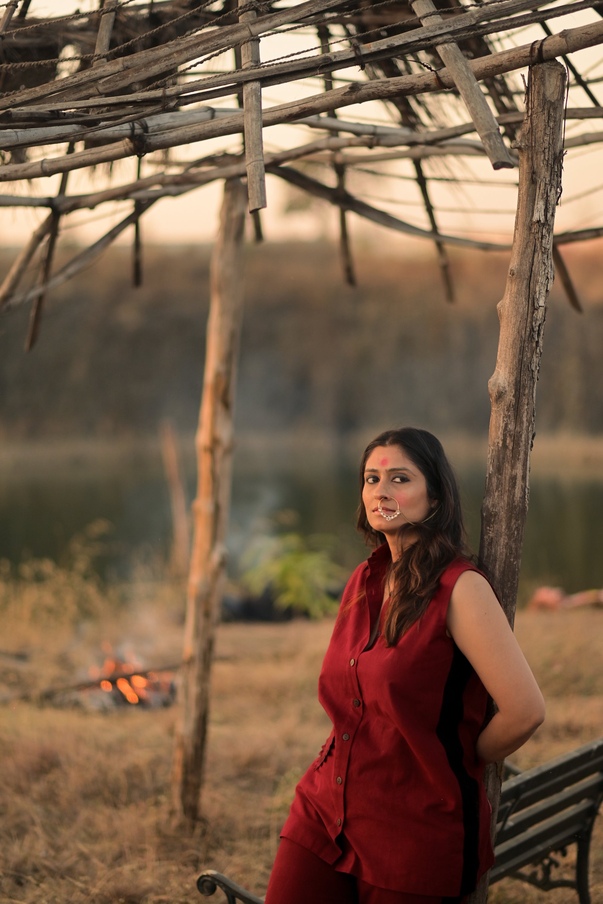 Commanding yet effortlessly wearable, this deep maroon co-ord set blends structure with ease. The sleeveless button-down shirt features a striking sunburst pocket on the right, a subtle yet powerful nod to our signature motif. Paired with tailored trousers, the look is bold, grounded, and unapologetically confident.
